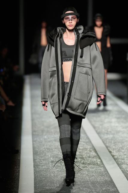For men, the collection includes 23 pieces of street wear with characteristics and functionality of performance wear. The color palette is mainly grey and black featuring sweatshirts and hoodies with knit sleeves designed with a foam injected croc pattern. Highlights include a silver down jacket with a hood and side ventilation zips and a water-resistant windbreaker in black with a removable vest. The Alexander Wang x H&M collection will be available beginning November 6 in select H&M stores worldwide as well as online at hm.com.