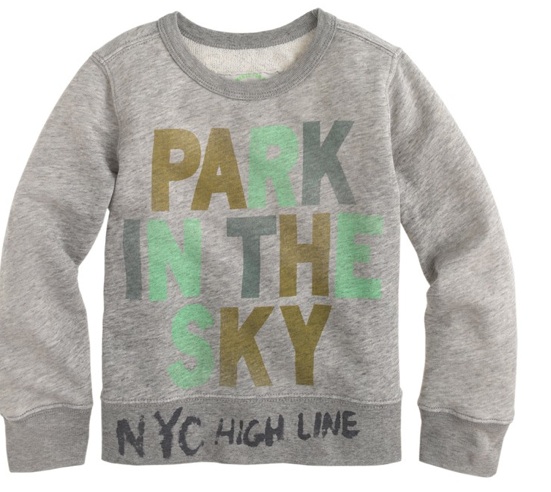 This week marks the launch of J. Crew’s Garments for Good program with a limited edition capsule collection, called the High Line, J.Crew Designs Capsule for the High Line in honor of the historic elevated railway that was built between 1929 and 1934. The collection consist of t shirts, sweatshirts, friendship bracelets and tote bags ranging in price from $15 to $78 and can be purchased at the High Line Shop on West 16th Street, at select J. Crew stores in New York City or online by visiting www.jcrew.com. 100% of the net proceeds from the sales will be donated to Friends of the High Line to support the conservation and maintenance.