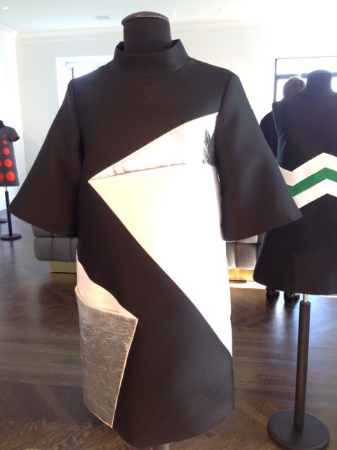Keeping with her design aesthetic, Lisa Perry’s Fall 2015 collection was inspired by New York City, particularly the Queensboro/59th Street Bridge, which set the tone and was the backdrop of the presentation located at One Sutton Place South. The bridge’s clean lines and geometric shapes took center stage in the collection that included 60’s mod style dresses in colorful graphic prints, and a stylish pant in a psychedelic print paired with a Mongolian lamb top. The most striking look was a sleeveless gown in a circular cutout in grey and orange. A shorter version was also noticeable with a comparable circular cutout in grey and orange.