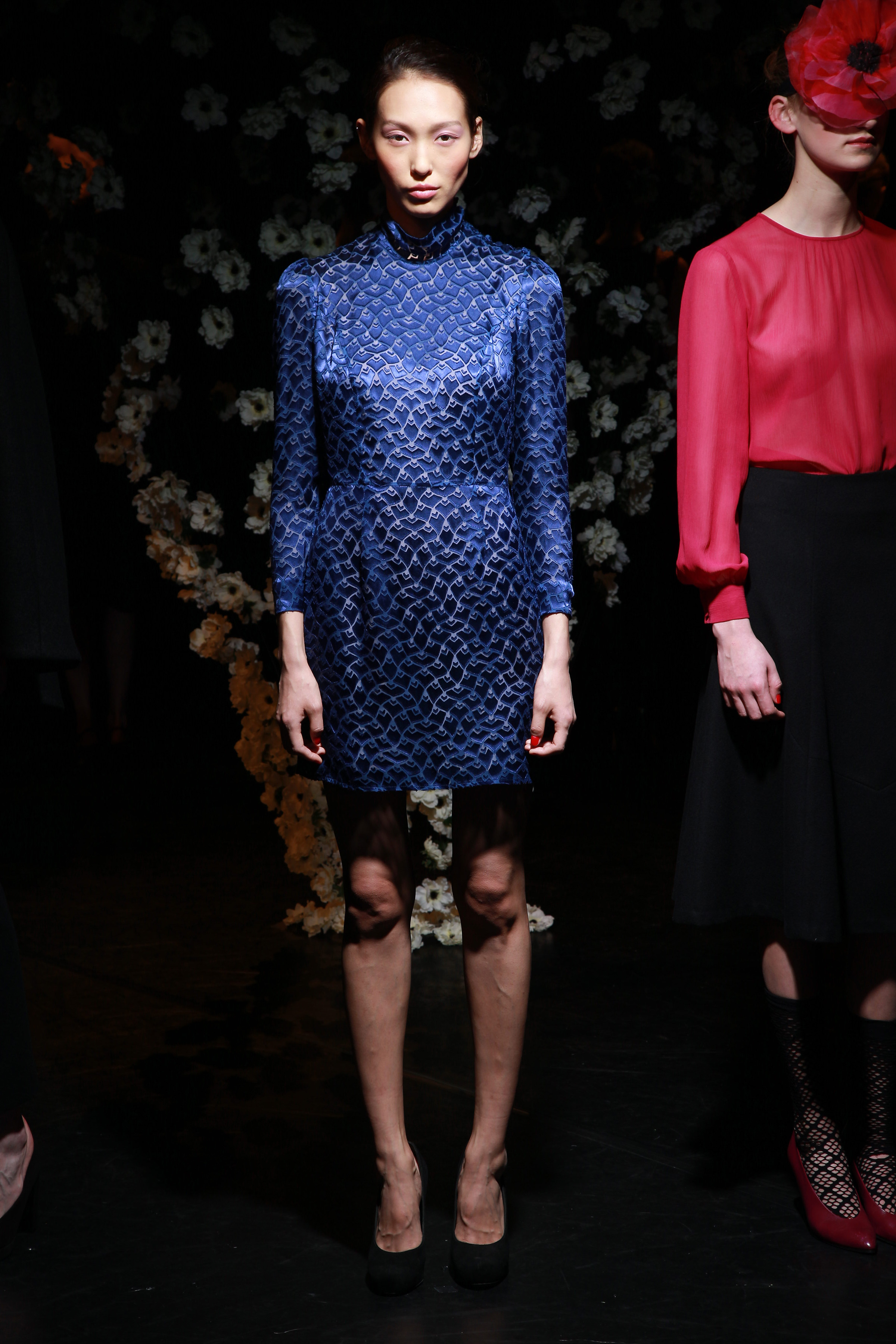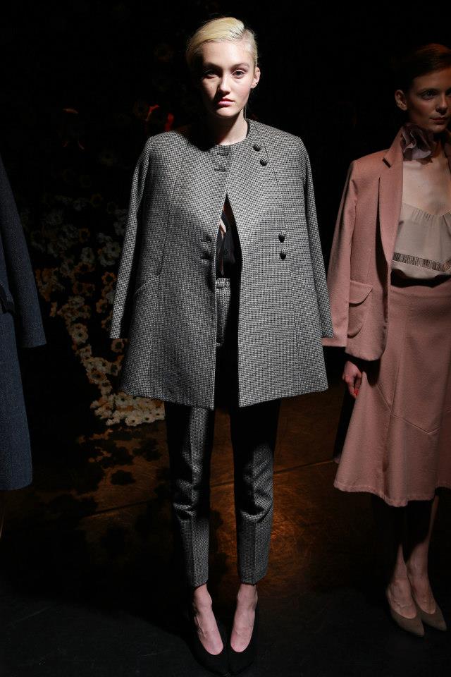 This season creative director Emma Fletcher was inspired by Bianca Jagger and the seductive nudes by Carlo Mollino , which was revealed in tailored woolen jackets and skirts. Looks were shown matched with blouses in printed silk displaying a feminine yet sexy edge by pairing a semi-translucent silk blouse with a leather skirt. Royal blue and fuschia gave pops of color presented in the high-neck texture like dress and the scoop neck crinkle chiffon blouse. As Mollino once said, ” everything is permissible as long as it is fantastic”. And that’s exactly what was shown for Tocca Fall 2013.