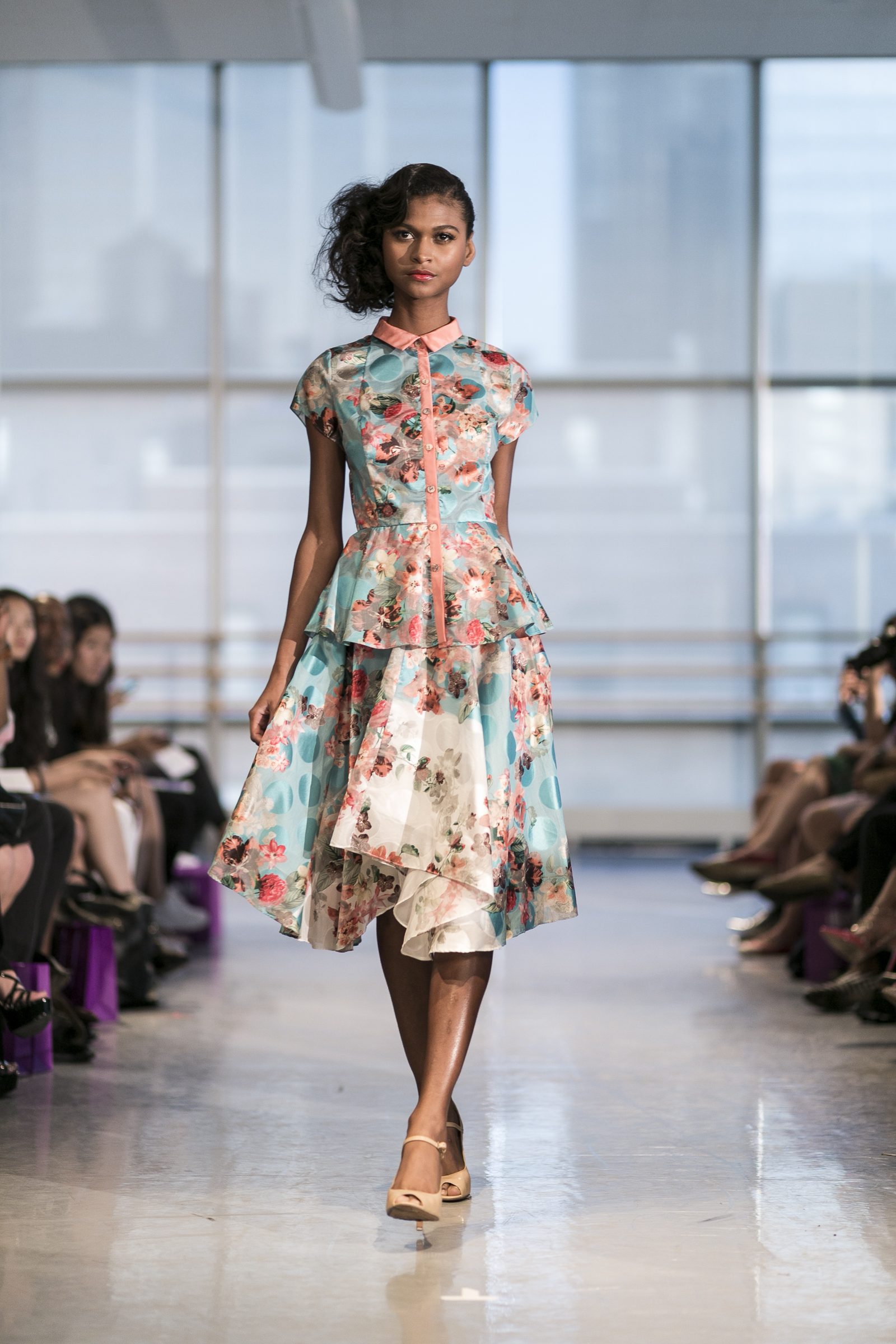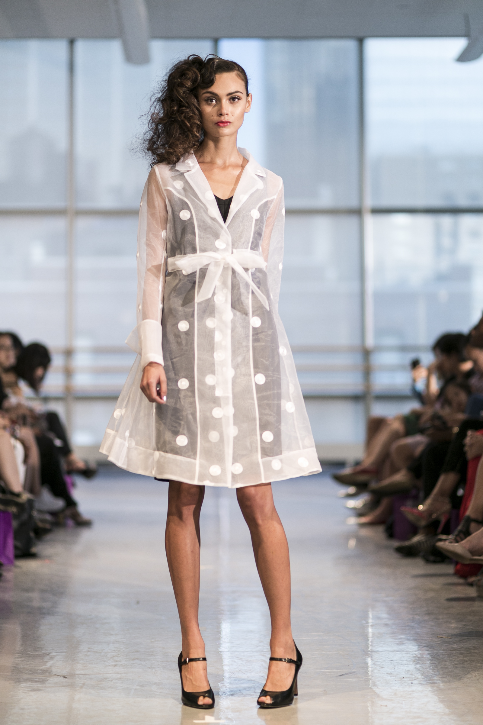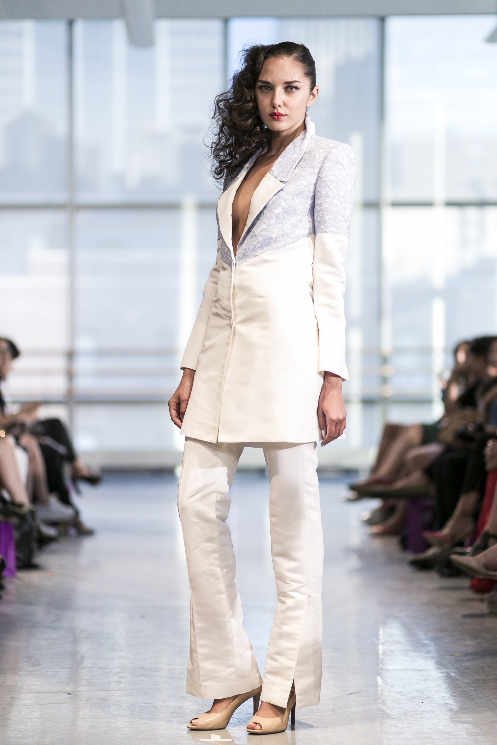 Ready to wear women’s brand Yuna Yang previewed a Spring/Summer 2015 that’s all about florals, loose silhouettes, and sheer overlay. Set to a 50’s big band soundtrack at the Alvin Ailey center, each look showcased a soft, feminine beauty that simultaneously favored comfort and style. Key standouts were the Four Layer Dress, Blue lace jacket with white pants, and White Polka Dot Coat with Black Dress. The Yuna Yang woman is one who wants to be seen: bold and unafraid to take a chance but definitely the best-dressed woman in the room.